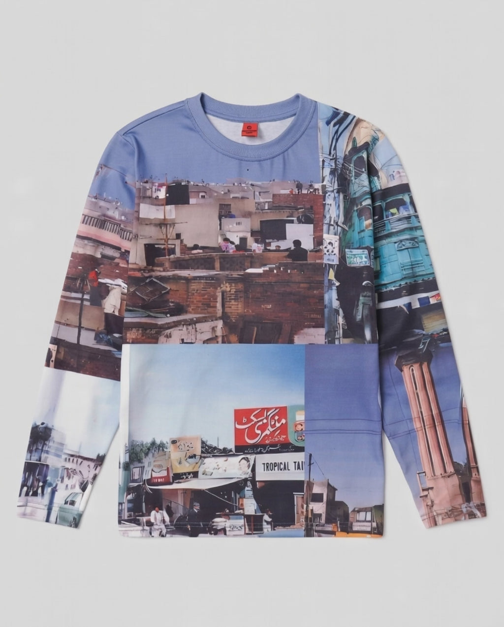 Images on the hoodie depict historic Pakistan. Made and milled in Pakistan.